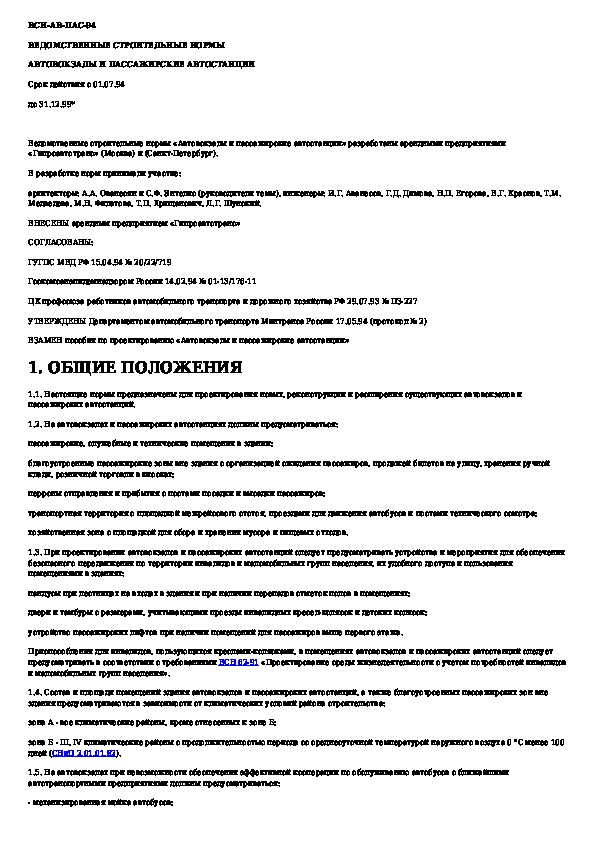 ВСН АВ-ПАС-94: Автовокзалы и пассажирские автостанции