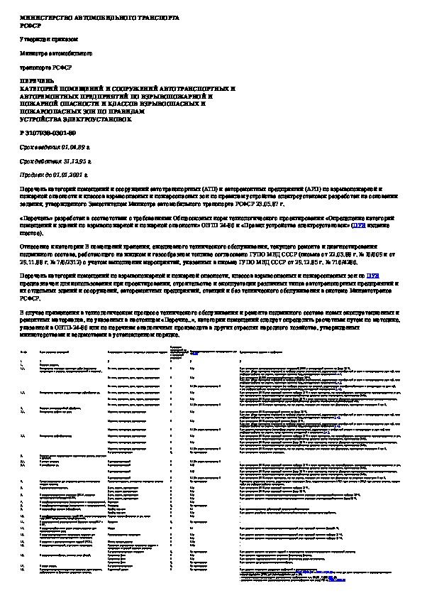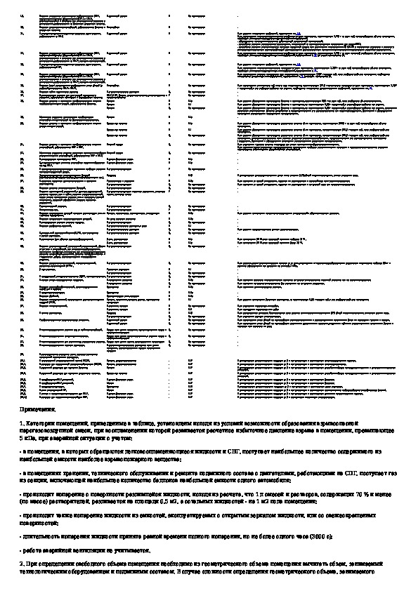 Перечень категорий помещений и сооружений автотранспортных и авторемонтных предприятий по взрывопожарной и пожарной опасности и