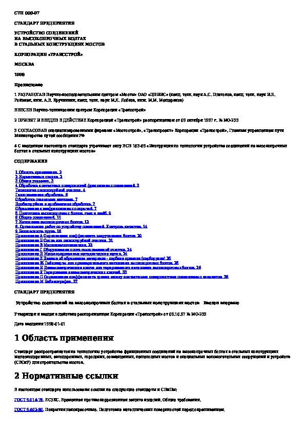 СТП 006-97: Устройство соединений на высокопрочных болтах в стальных конструкциях мостов