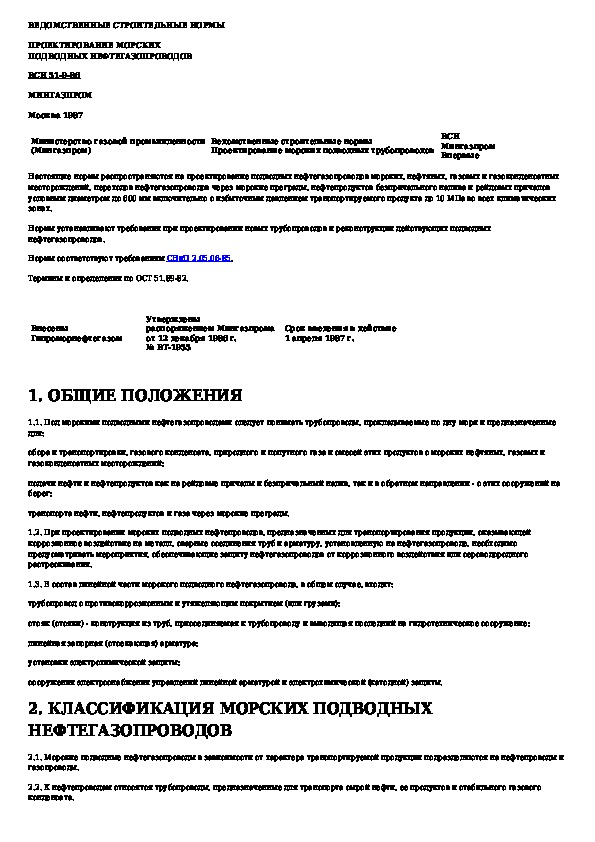 ВСН 51-9-86: Проектирование морских подводных нефтегазопроводов