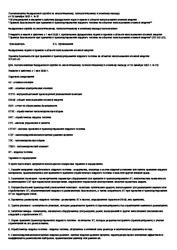 Правила безопасности при хранении и транспортировании ядерного топлива на объектах использования атомной энергии