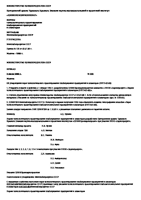 Наша цель состоит в том, чтобы предоставить вам быстрый доступ к содержанию документа Ведомственные нормы технологического проектирования хлебоприемных предприятий и элеваторов.
