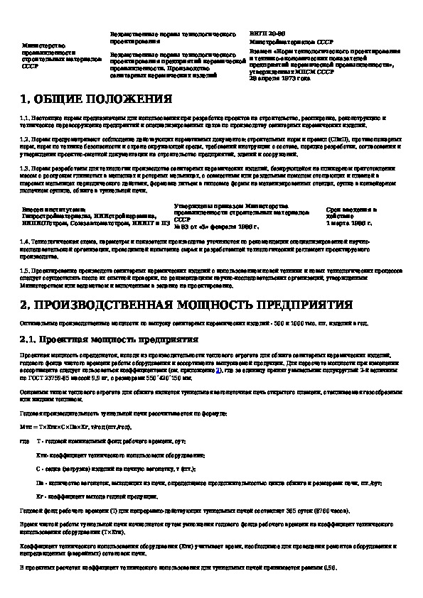 Ведомственные нормы технологического проектирования предприятий керамической промышленности. Производство санитарных керамиче