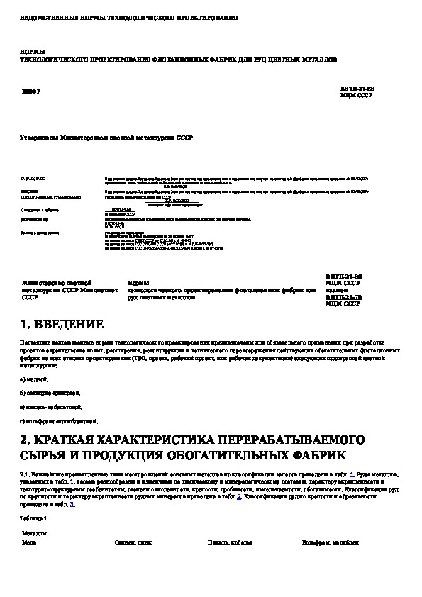 ВНТП 21-86: Нормы технологического проектирования флотационных фабрик для руд цветных металлов