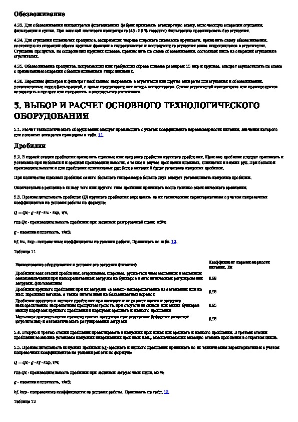 Нормы технологического проектирования флотационных фабрик для руд цветных металлов