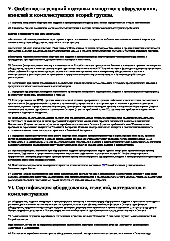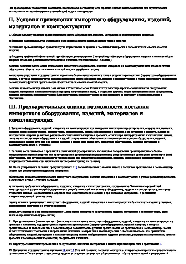Условия поставки импортного оборудования, изделий и комплектующих для ядерных установок, радиационных источников и пунктов хране