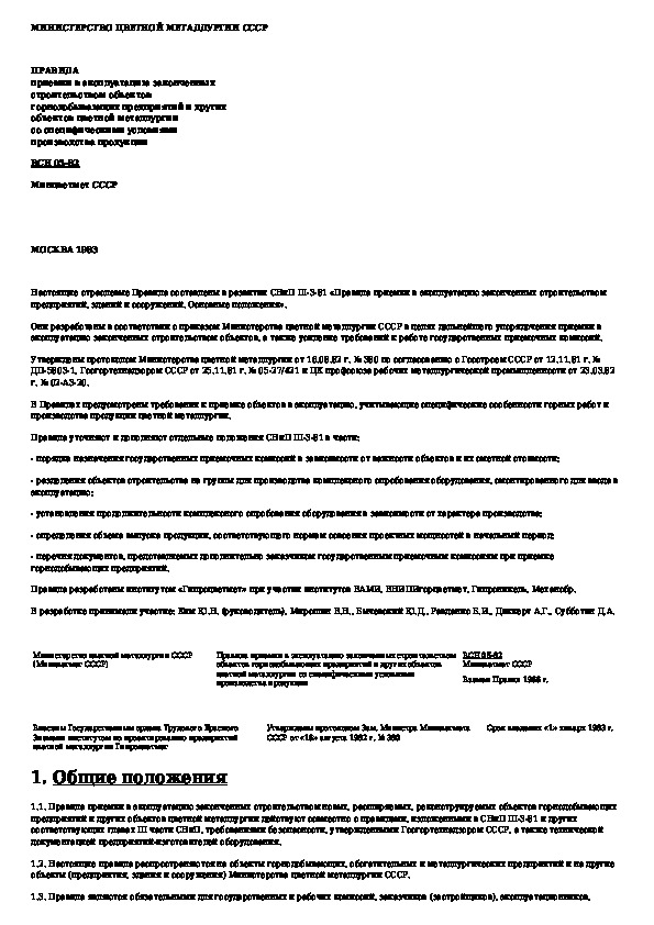 Правила приемки в эксплуатацию законченных строительством объектов горнодобывающих предприятий и других объектов цветной метал