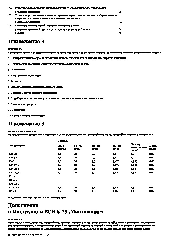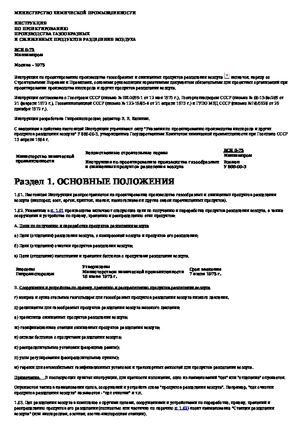 ВСН 6-75: Инструкция по проектированию производства газообразных и сжиженных продуктов разделения воздуха
