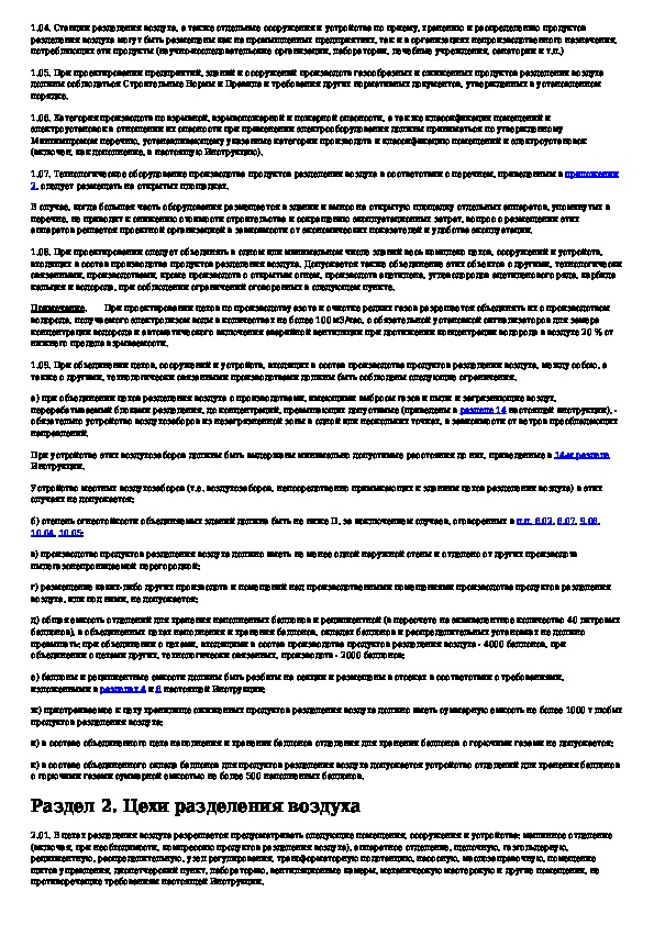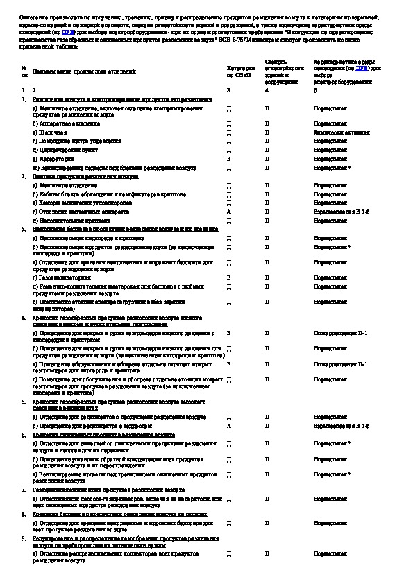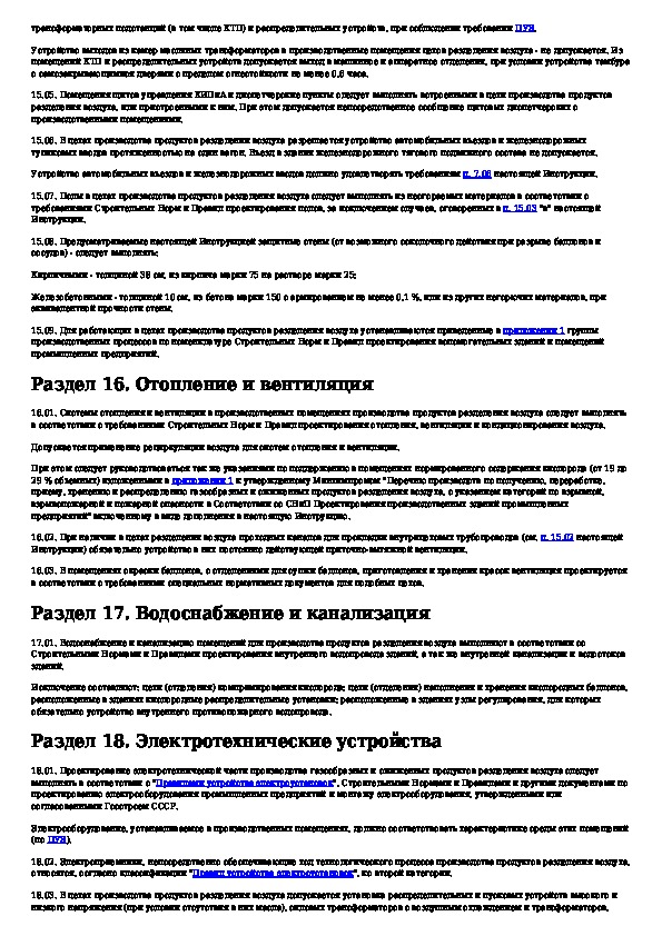 Инструкция по проектированию производства газообразных и сжиженных продуктов разделения воздуха