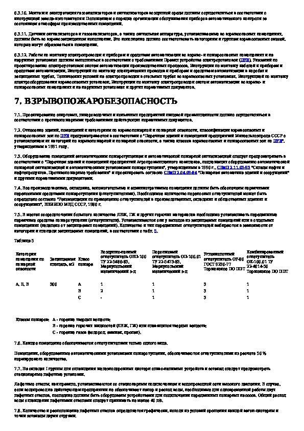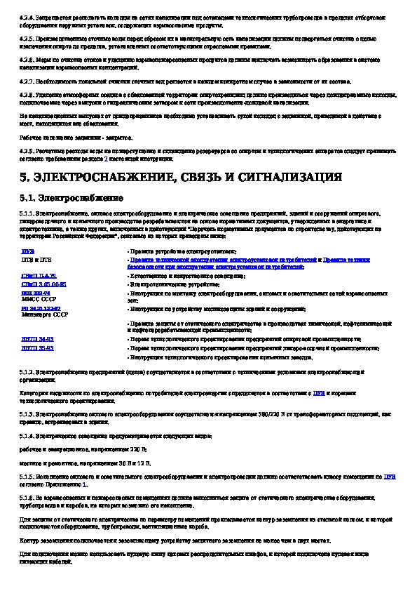 Инструкция по проектированию взрывопожароопасных производств спиртовых, ликеро-водочных и коньячных предприятий пищевой промыш