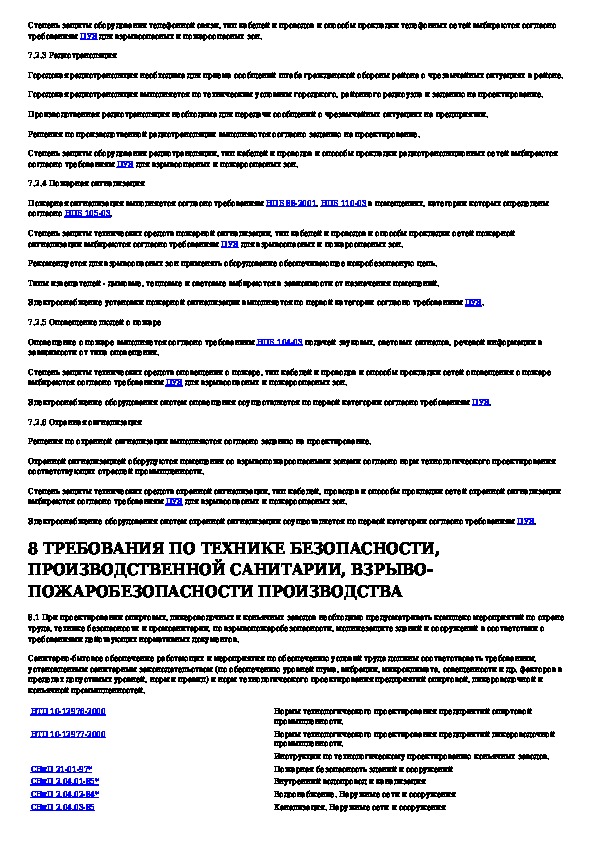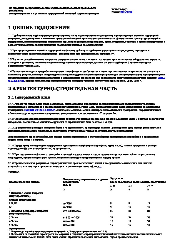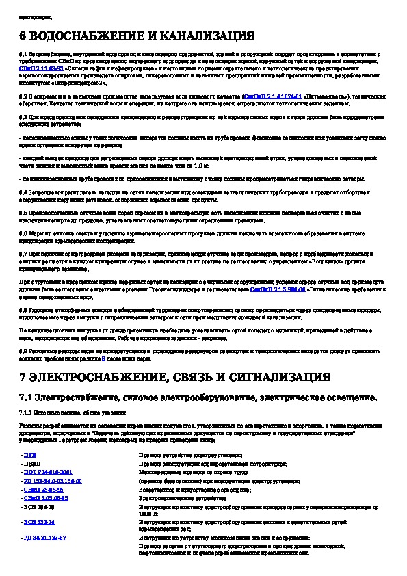 Инструкция по проектированию взрывоопасных производств спиртовых, ликероводочных и коньячных предприятий пищевой промышленност