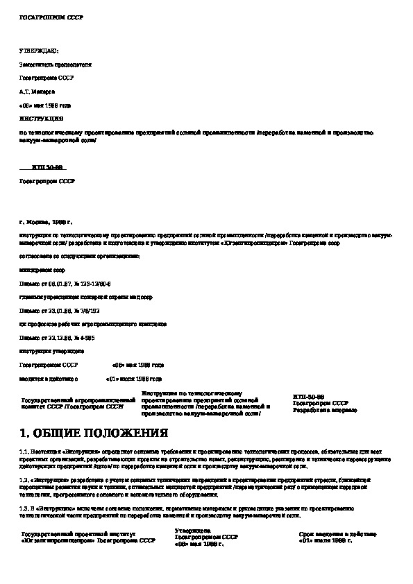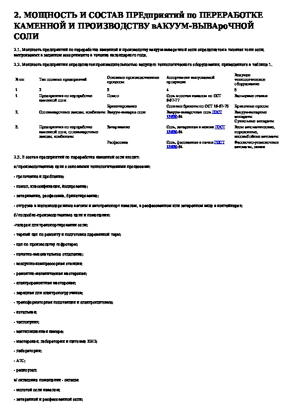 Инструкция по технологическому проектированию предприятий соляной промышленности /переработка каменной и производство вакуум-в