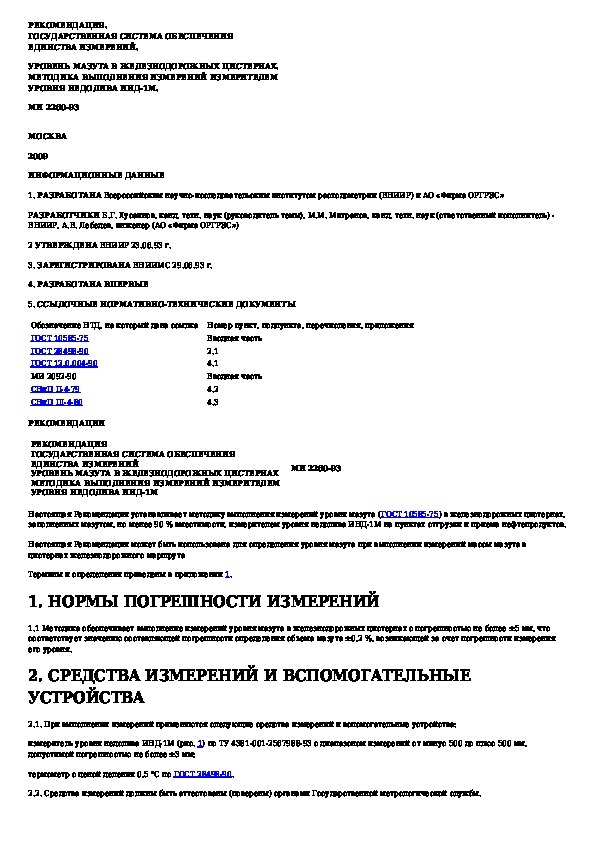 Наша цель состоит в том, чтобы предоставить вам быстрый доступ к содержанию документа Рекомендация. ГСИ. Уровень мазута в железнодорожных цистернах. Методика выполнения измерений измерителем уровня недолива ИНД-1М.
