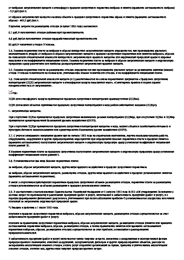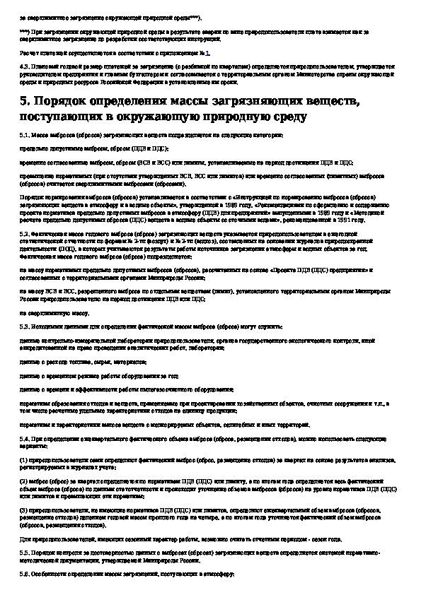 Инструктивно-методические указания по взиманию платы за загрязнение окружающей природной среды
