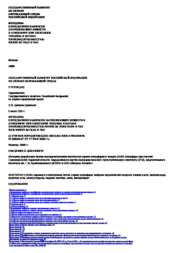 Наша цель состоит в том, чтобы предоставить вам быстрый доступ к содержанию документа Методика определения выбросов загрязняющих веществ в атмосферу при сжигании топлива в котлах производительностью менее 30 тонн па.