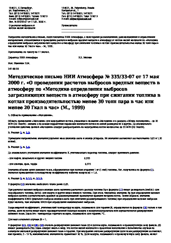 • Просмотр в полноэкранном режиме - легко просмотреть документ Методика определения выбросов загрязняющих веществ в атмосферу при сжигании топлива в котлах производительностью менее 30 тонн па (без загрузки его на свой компьютер). Вы можете использовать режим полноэкранного просмотра, используйте кнопку «Открыть в Pdf-viewer».