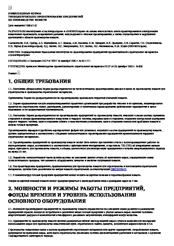 Общесоюзные нормы технологического проектирования предприятий по производству извести