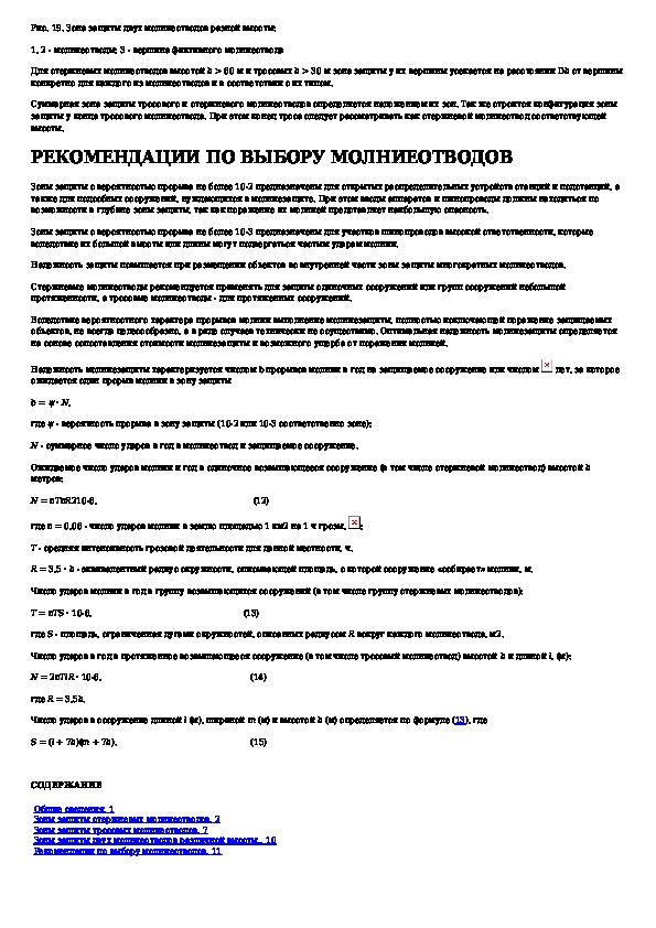 Руководящие указания по расчету зон защиты стержневых и тросовых молниеотводов