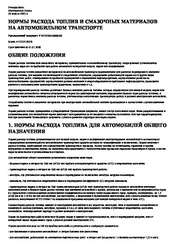 Р 3112194-0366-03: Нормы расхода топлив и смазочных материалов на автомобильном транспорте
