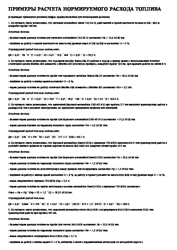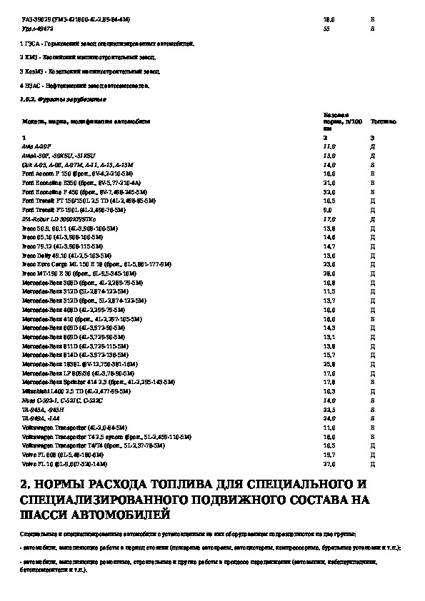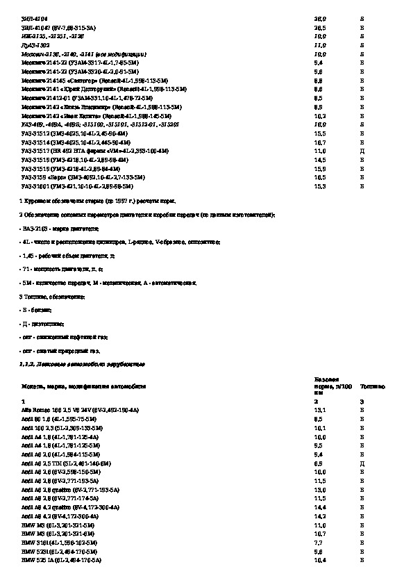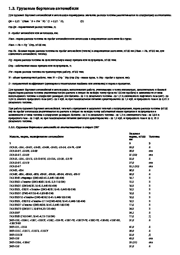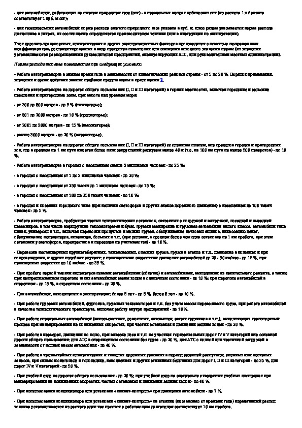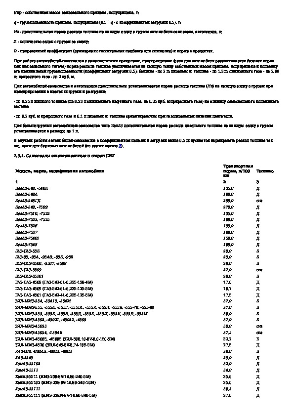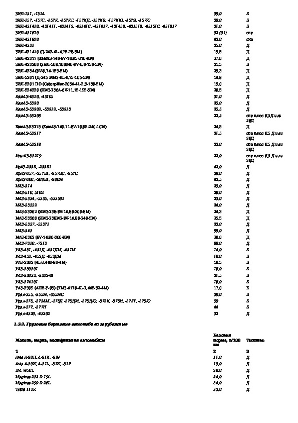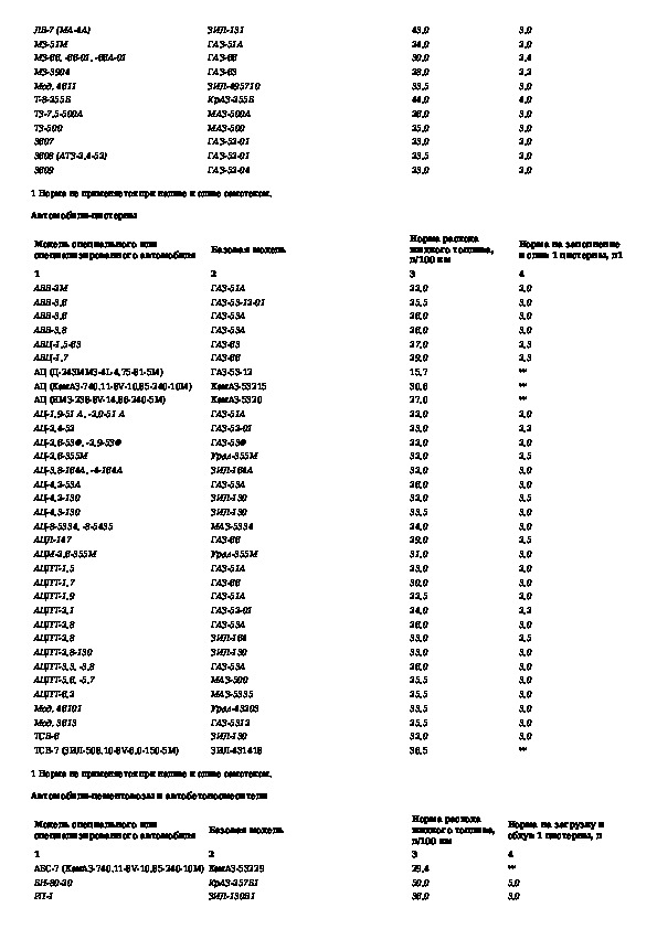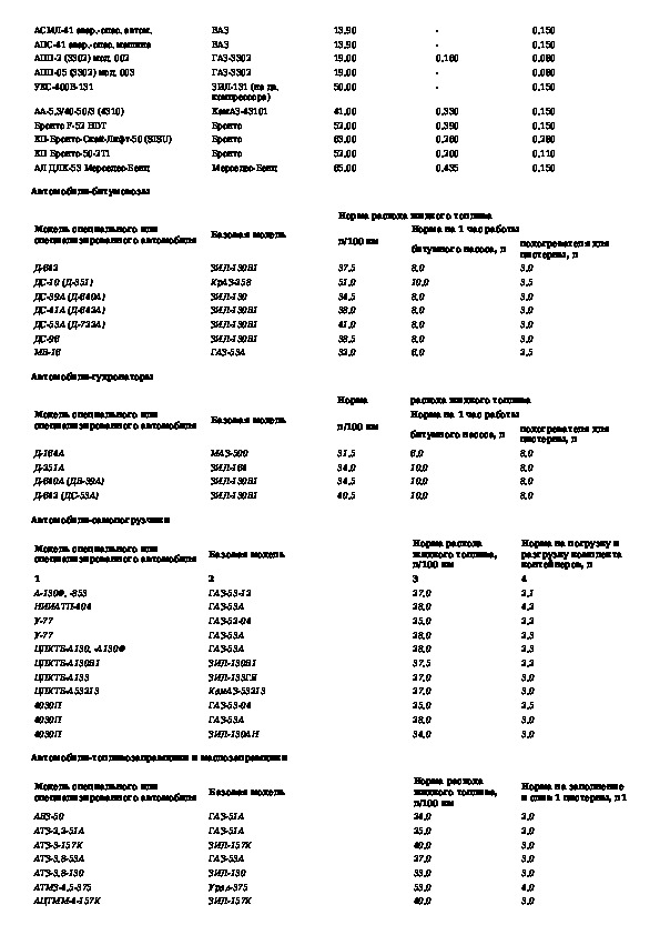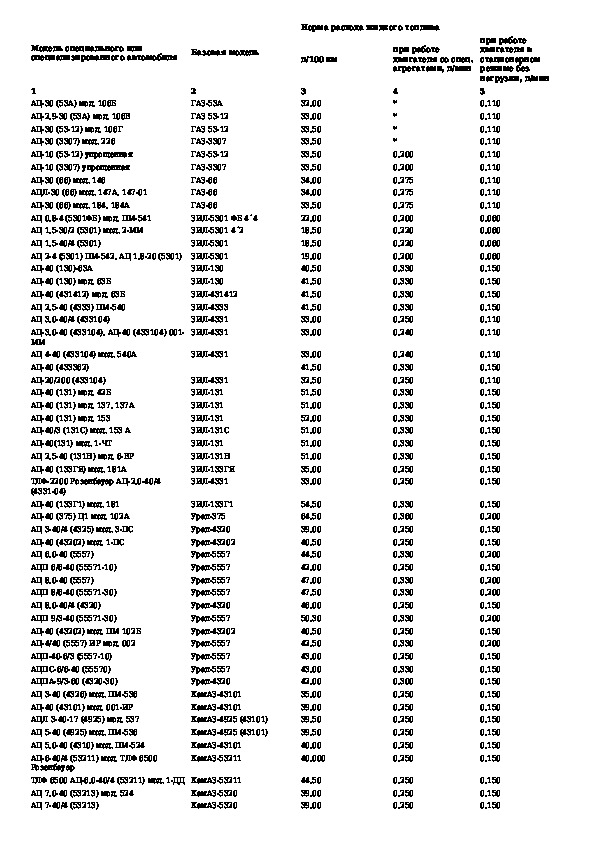 Нормы расхода топлив и смазочных материалов на автомобильном транспорте