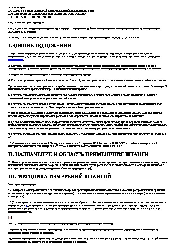 Инструкция по работе с универсальной измерительной штангой ШИУ-500 при контроле изоляторов и контактов на подстанциях и ВЛ напряже