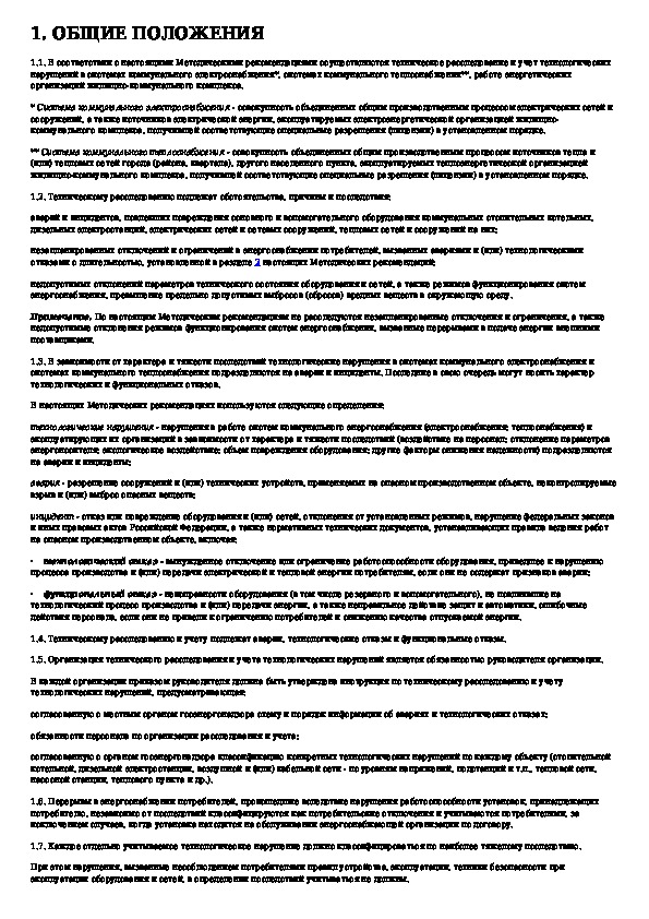 Методические рекомендации по техническому расследованию и учету технологических нарушений в системах коммунального энергоснабж