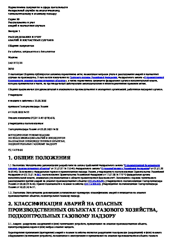 Наша цель состоит в том, чтобы предоставить вам быстрый доступ к содержанию документа Методические рекомендации по классификации аварий и инцидентов на опасных производственных объектах, подконтрольных газовому на.