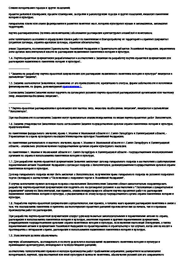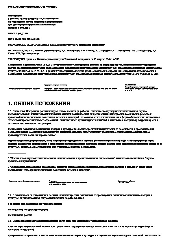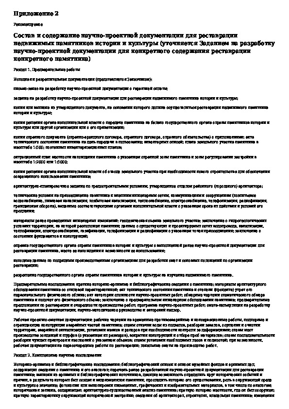 Инструкция о составе, порядке разработки, согласовании и утверждении научно-проектной документации для реставрации недвижимых па