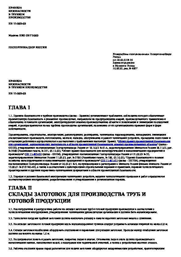 ПБ 11-562-03: Правила безопасности в трубном производстве