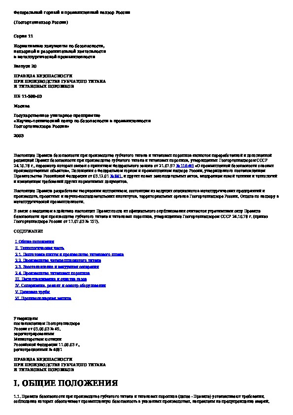 Наша цель состоит в том, чтобы предоставить вам быстрый доступ к содержанию документа Правила безопасности при производстве губчатого титана и титановых порошков.