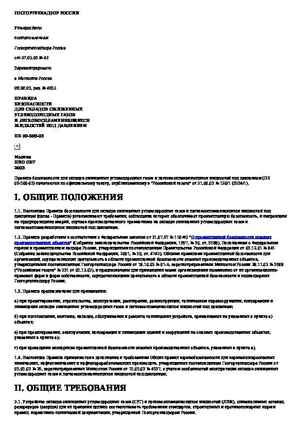 ПБ 09-566-03: Правила безопасности для складов сжиженных углеводородных газов и легковоспламеняющихся жидкостей под давлением