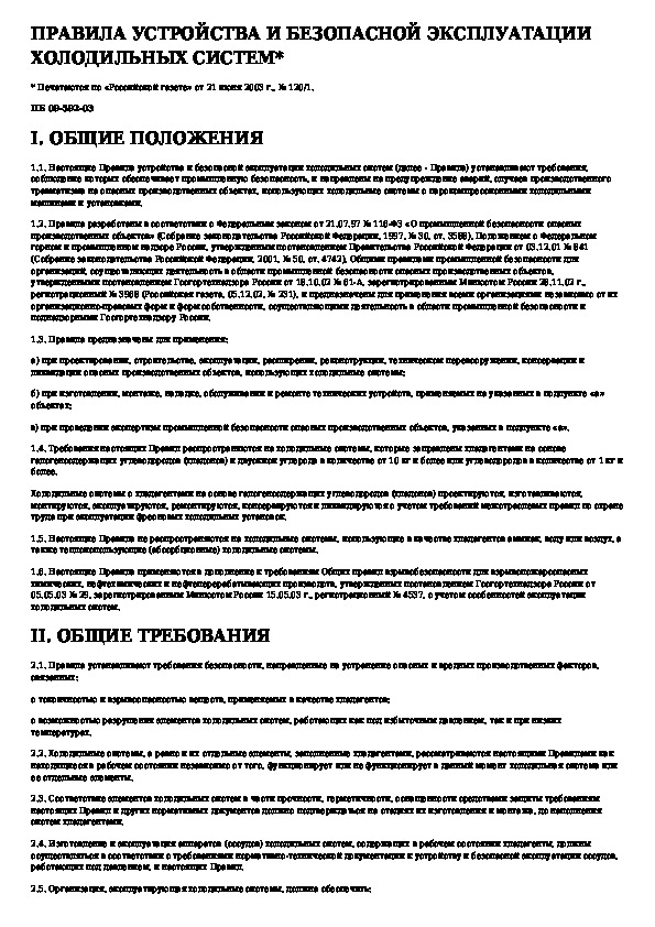 Наша цель состоит в том, чтобы предоставить вам быстрый доступ к содержанию документа Правила устройства и безопасной эксплуатации холодильных систем.