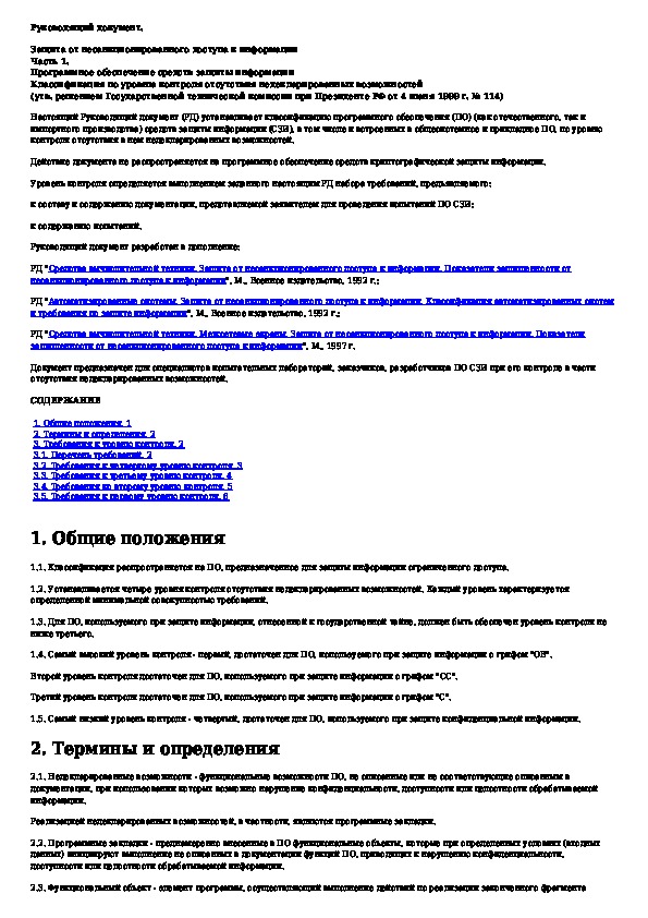 Наша цель состоит в том, чтобы предоставить вам быстрый доступ к содержанию документа Руководящий документ. Защита от несанкционированного доступа к информации. Часть 1. Программное обеспечение средств защиты информ.