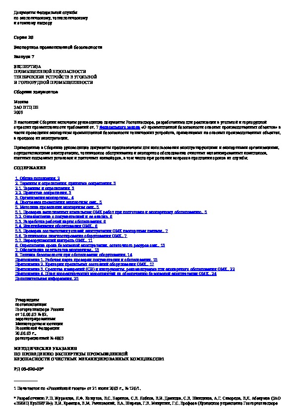 РД 05-620-03: Методические указания по проведению экспертизы промышленной безопасности очистных механизированных комплексов