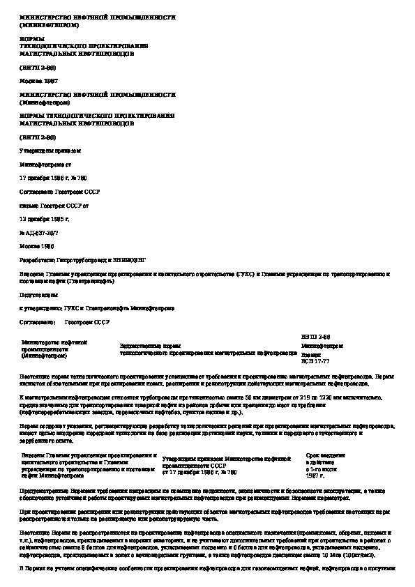 ВНТП 2-86: Нормы технологического проектирования магистральных нефтепроводов
