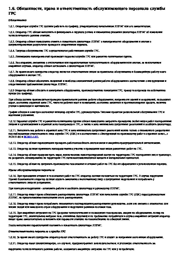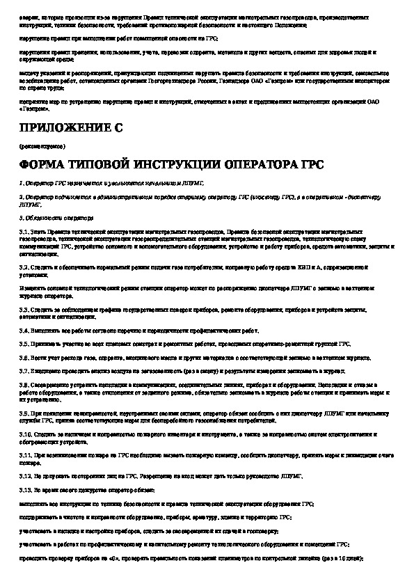 Положение по технической эксплуатации газораспределительных станций магистральных газопроводов