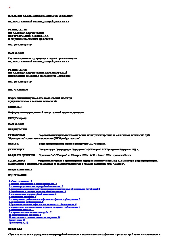 ВРД 39-1.10-001-99: Руководство по анализу результатов внутритрубной инспекции и оценке опасности дефектов