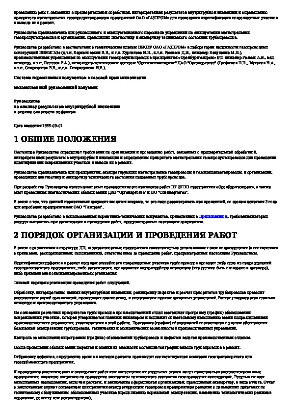 Наша цель состоит в том, чтобы предоставить вам быстрый доступ к содержанию документа Руководство по анализу результатов внутритрубной инспекции и оценке опасности дефектов.