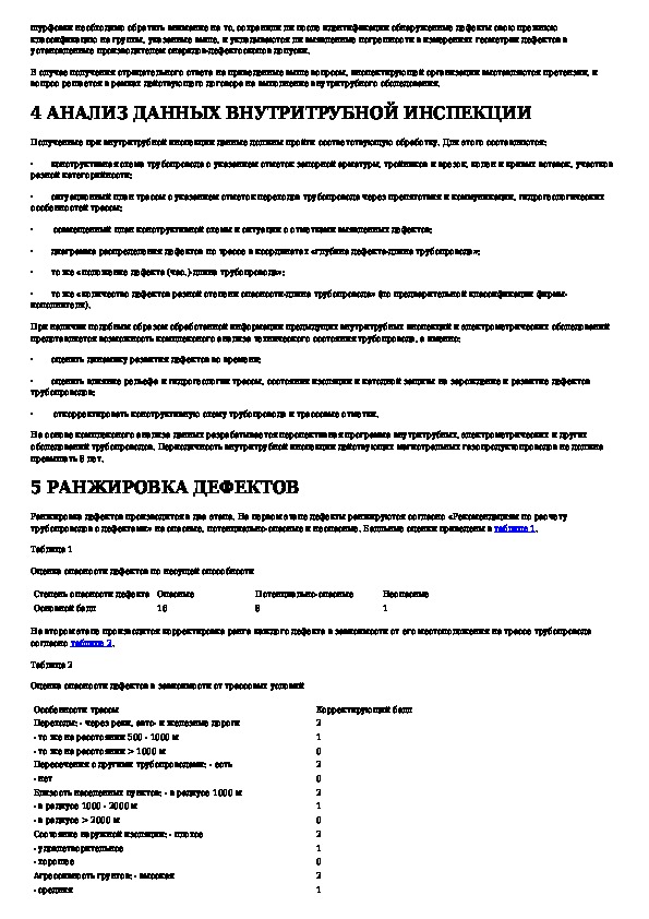 Руководство по анализу результатов внутритрубной инспекции и оценке опасности дефектов