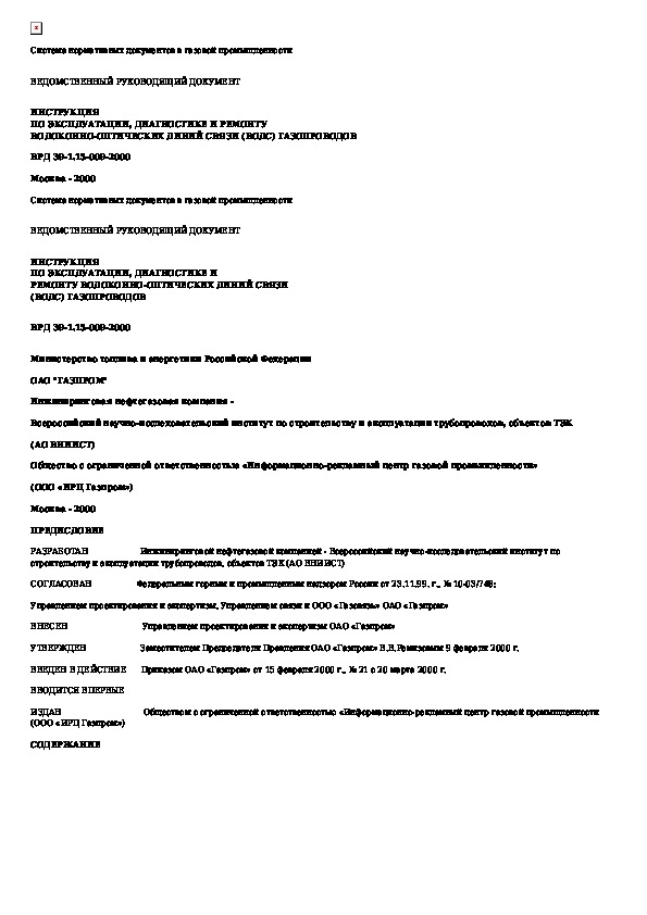 ВРД 39-1.15-009-2000: Инструкция по эксплуатации, диагностике и ремонту волоконно-оптических линий связи (ВОЛС) газопроводов
