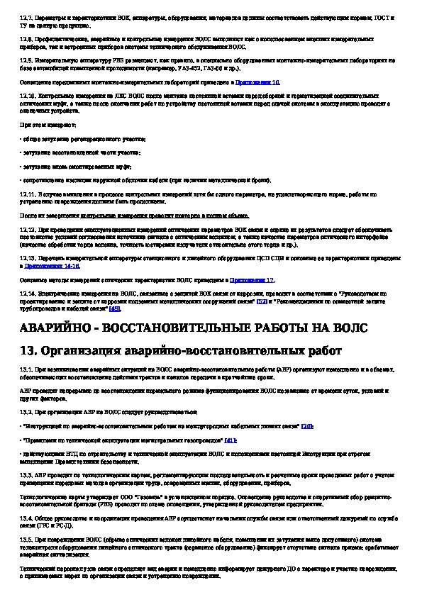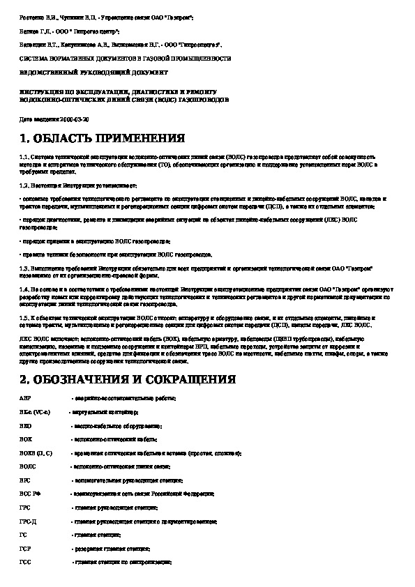 Инструкция по эксплуатации, диагностике и ремонту волоконно-оптических линий связи (ВОЛС) газопроводов