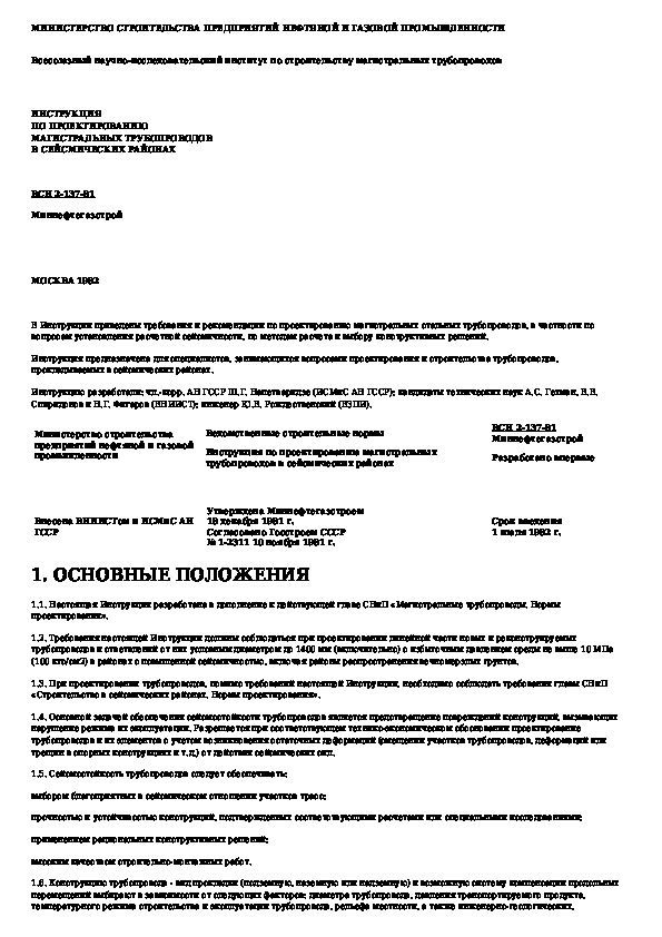 ВСН 2-137-81: Инструкция по проектированию магистральных трубопроводов в сейсмических районах