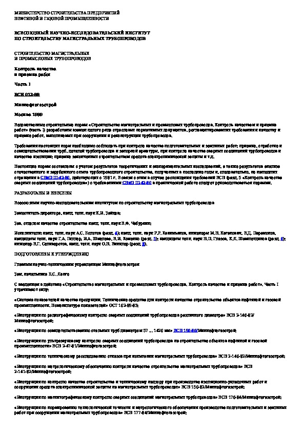Наша цель состоит в том, чтобы предоставить вам быстрый доступ к содержанию документа Строительство магистральных и промысловых трубопроводов. Контроль качества и приемка работ. Часть I.