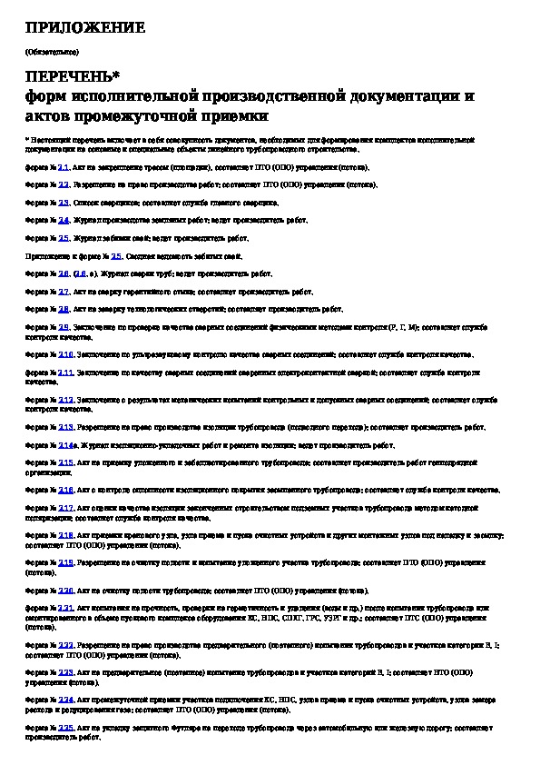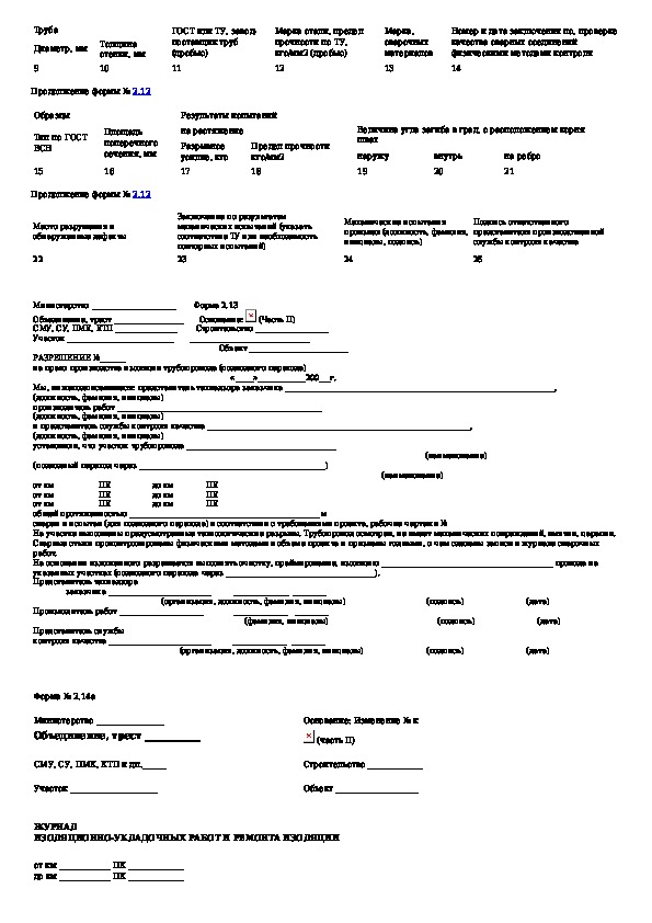 Строительство магистральных и промысловых трубопроводов. Контроль качества и приемка работ. Часть II. Формы документации и правила