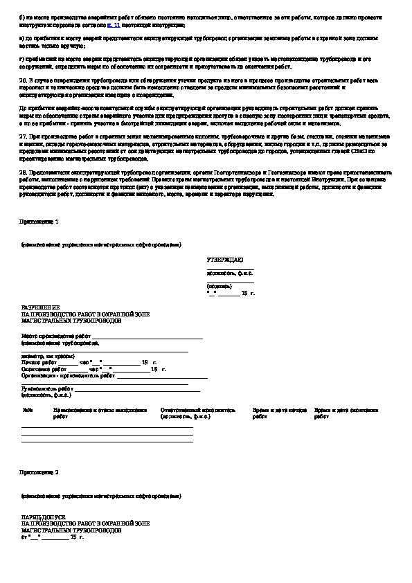 Инструкция по производству строительных работ в охранных зонах магистральных трубопроводов Министерства нефтяной промышленност