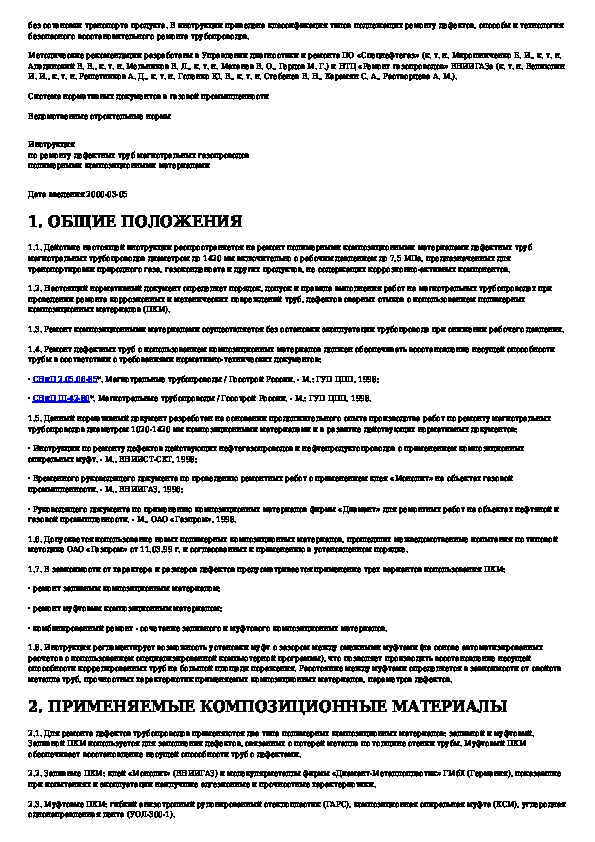 Наша цель состоит в том, чтобы предоставить вам быстрый доступ к содержанию документа Инструкция по ремонту дефектных труб магистральных газопроводов полимерными композиционными материалами.