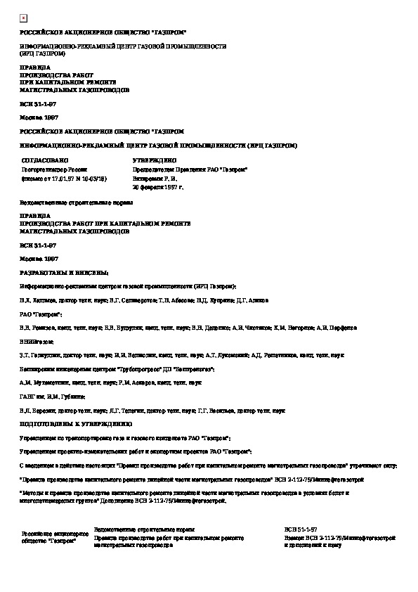 Наша цель состоит в том, чтобы предоставить вам быстрый доступ к содержанию документа Правила производства работ при капитальном ремонте магистральных газопроводов.