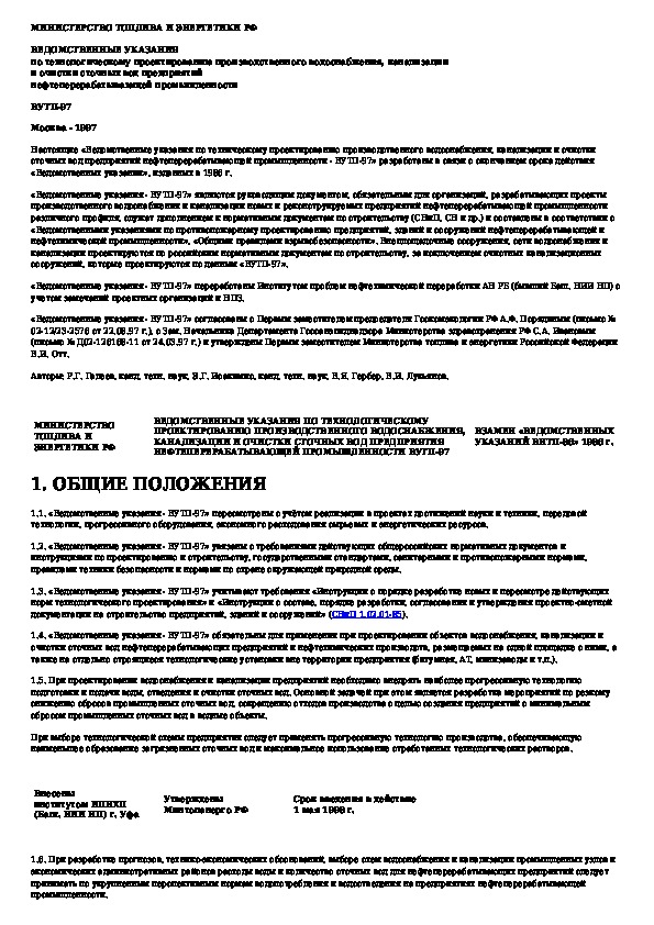 Наша цель состоит в том, чтобы предоставить вам быстрый доступ к содержанию документа Ведомственные указания по технологическому проектированию производственного водоснабжения, канализации и очистки сточных вод п.