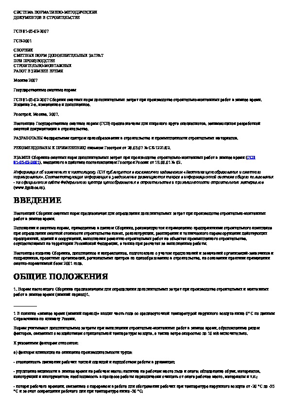 ГСН 81-05-02-2007: Сборник сметных норм дополнительных затрат при производстве строительно-монтажных работ в зимнее время