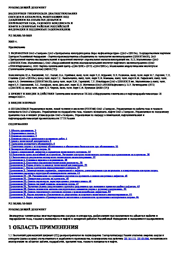 РД 26.260.16-2002: Экспертное техническое диагностирование сосудов и аппаратов, работающих под давлением на объектах добычи и переработки газа, газ